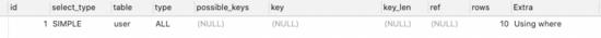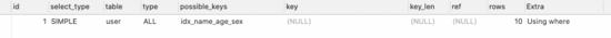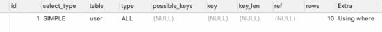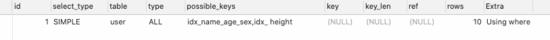 EXPLAIN SELECT * FROM `user` WHERE sex = '男';