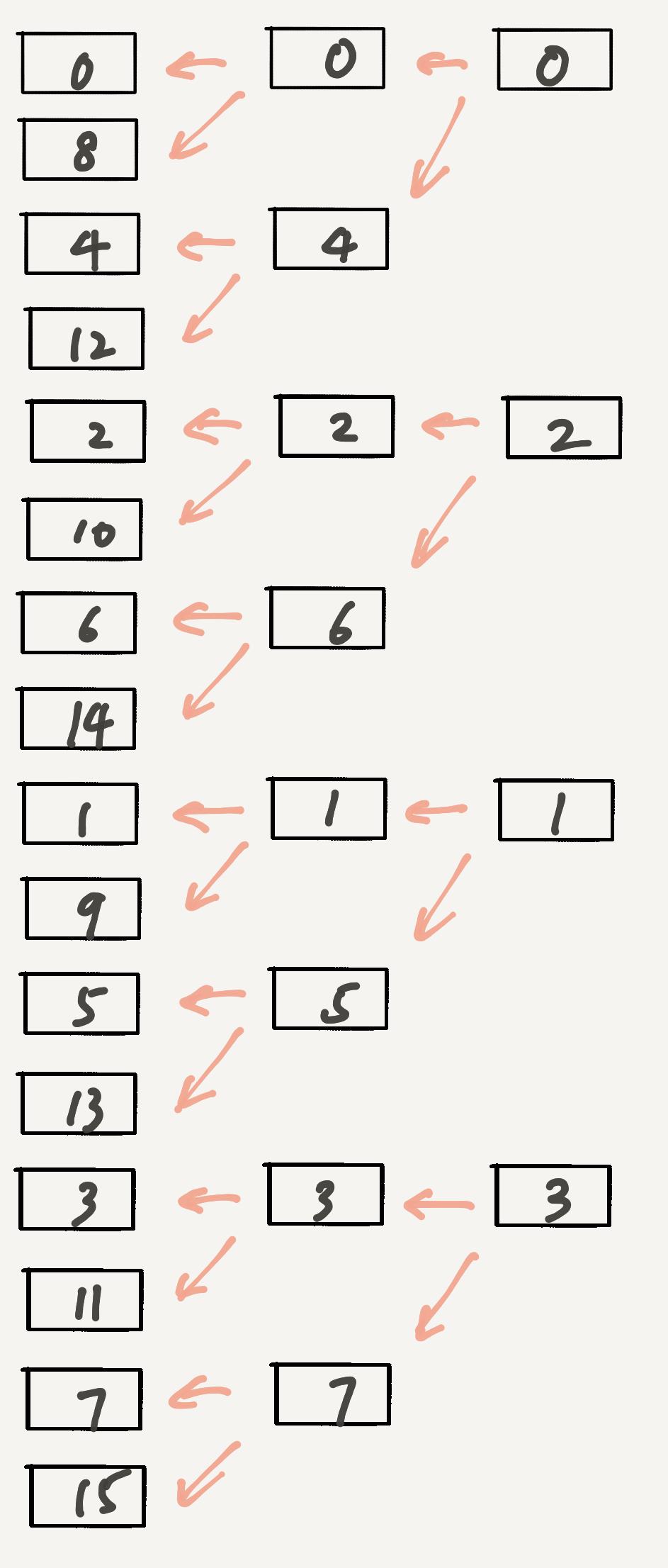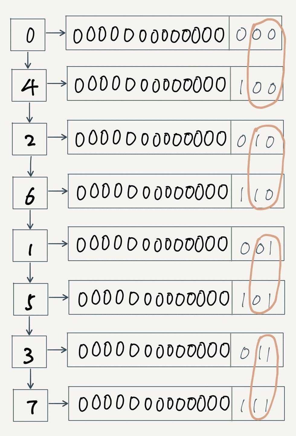 上面那段代码其实是保持低位的m位不变,高位一个为0一个为1。这样就保证了扩容后,跳过了的节点已经在之前被访问过,因为跳过的节点是被访问过的节点分出来的。
