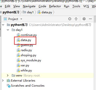 在python编辑器汇总新建一个data.py。