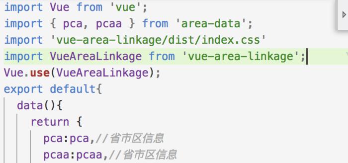 最近写的项目是vue框架,搭配element-ui框架。这个框架上手快,而且页面的大部分样式都有现成的可以用,使用起来比较方便。前几天有一个需求是要写省市区联动选择,上网搜罗了一遍之后发现了vue-area-linkage这个插件,应该是专门为vue准备的插件,下面开始介绍这个插件的使用方法。