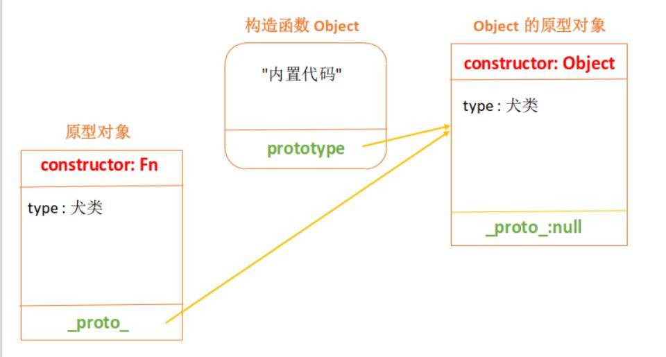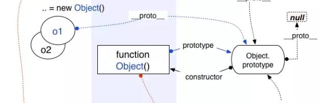 但是上图中会有一个疑问,Object 构造函数原型对象的也是对象,它肯定也有一个_proto_属性,为什么会指向 null 呢?