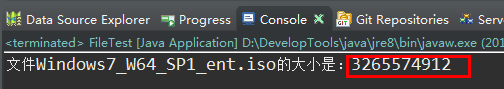 可以看出这个文件的实际大小是3265574912Byte,下面通过代码来获取文件大小,并进行比较: