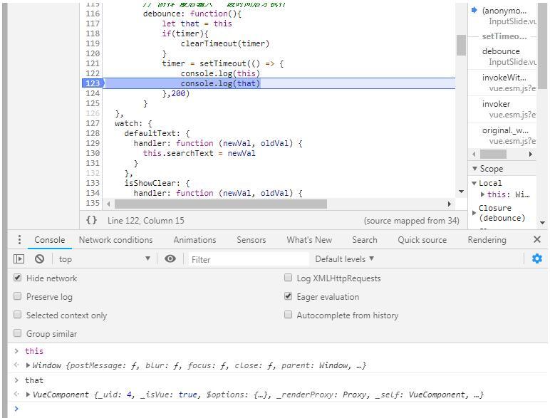 打了断点,在Console下输出 this 是Window对象,解决这个问题可以在setTimeout函数外面定义一个 that = this 就可以了,输出 that果然就是该组件的对象