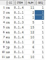 select a.*, row_number() over (partition by a.cc,a.item order by a.num desc) as seq from table_temp a