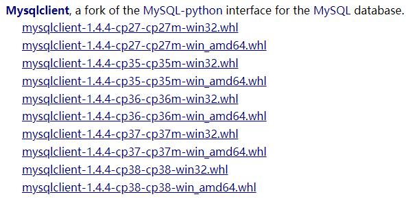 网上看到很过通过命令:pip install mysqlclient 进行安装的教程,但是我却始终安装失败,遇到的错误千奇百怪,后来通过自己下载mysqlclient客户端终于安装成功;