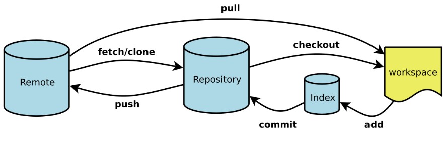 我们每天使用 Git ,但是很多命令记不住。一般来说,日常使用只要记住下图6个命令,就可以了,希望大家能够记住。