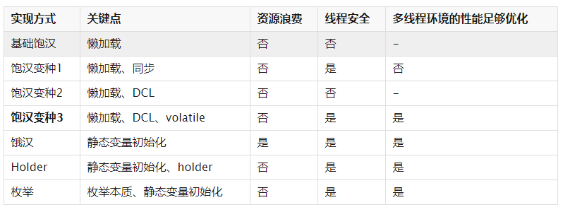 变种1的好处是写起来简单,且绝对线程安全;坏处是并发性能极差,事实上完全退化到了串行。单例只需要初始化一次,但就算初始化以后,synchronized的锁也无法避开,从而getInstance()完全变成了串行操作。性能不敏感的场景建议使用。