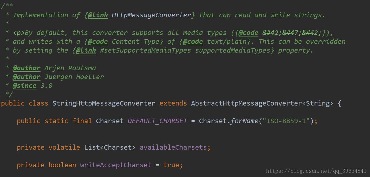 StringHttpMessageConverter是一个请求和响应信息的编码转换器,通过源码我们发现默认编码ISO-8859-1,不是UTF-8,所以我们只要通过上述配置将请求字符串转为UTF-8 即可