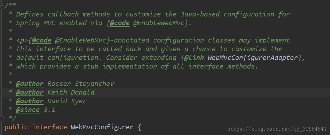 其实现的接口WebMvcConfigurer 定义了一些回调方法为springmvc提供一个通道通过java基本的配置。