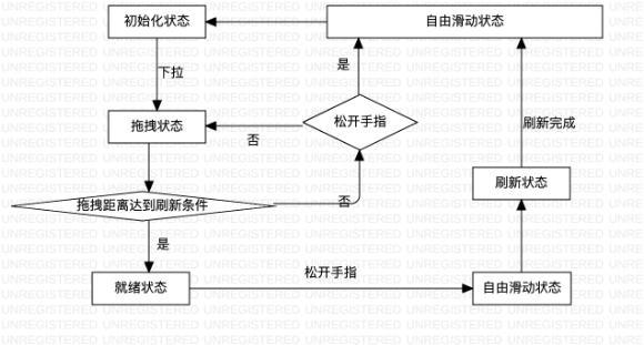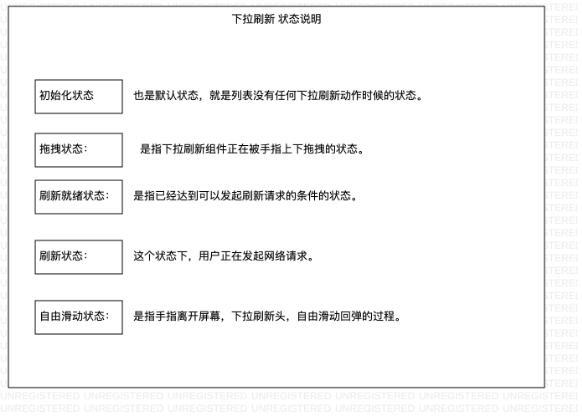 把下拉刷新分为5中状态,通过不同状态间的切换实现下拉刷新能力。