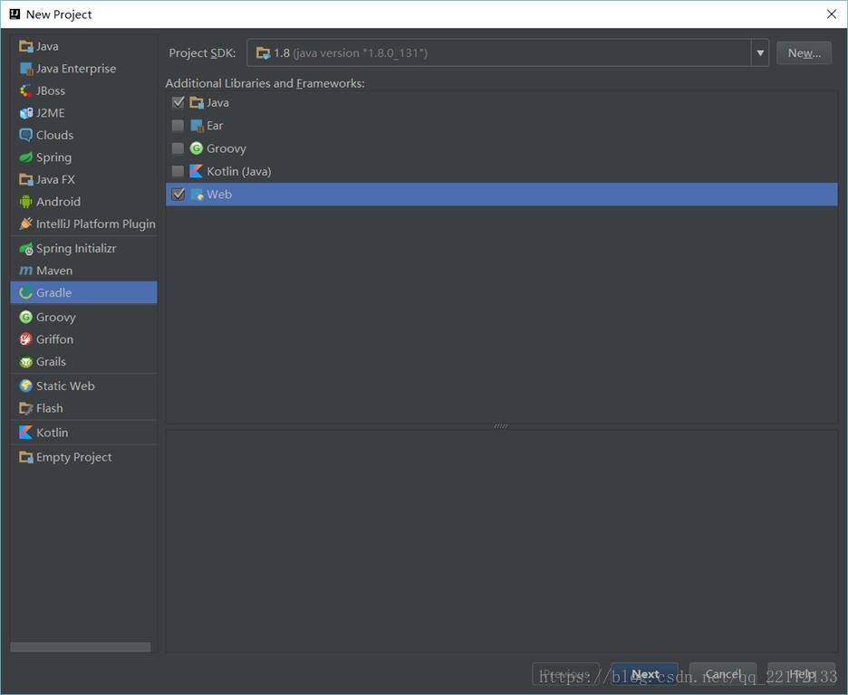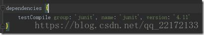 这里说明的是,测试编译阶段我们依赖junit的jar。其中包括complile(编译时)runtime(运行时)testCompile(测试编译时)testRuntime(测试运行时)。repositories是一个仓库gradle会根据从上到下的顺序依次去仓库中寻找jar