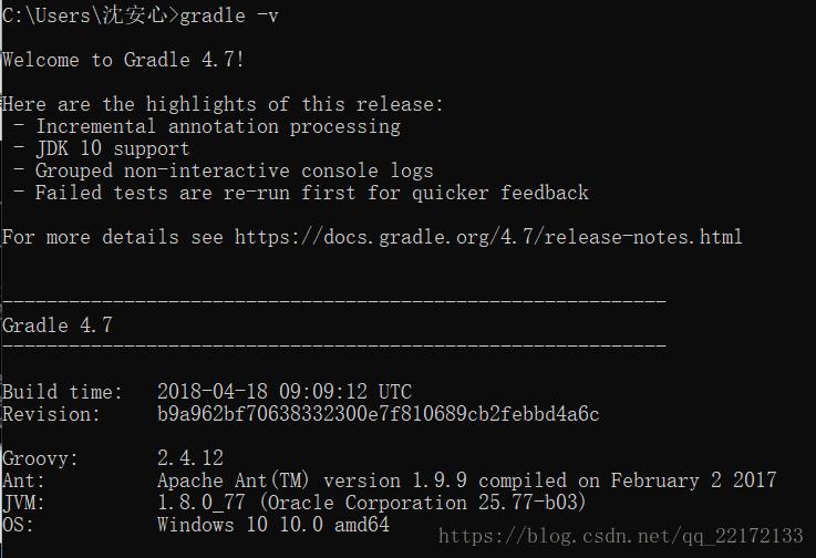 下载地址http://services.gradle.org/distributions/ ,下载你所需要对应的版本,我这里下载的是gradle-4.7-bin.zip。下载后解压到你想要的目录即可,然后设置环境变量: