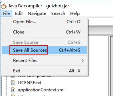 1、使用jd-gui打开原始的Jar包,选择File-->Save All Sources,会生成一个zip压缩包