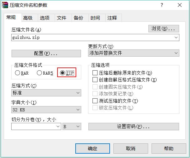 注意使用winrar工具打包时,要选择压缩文件格式为zip