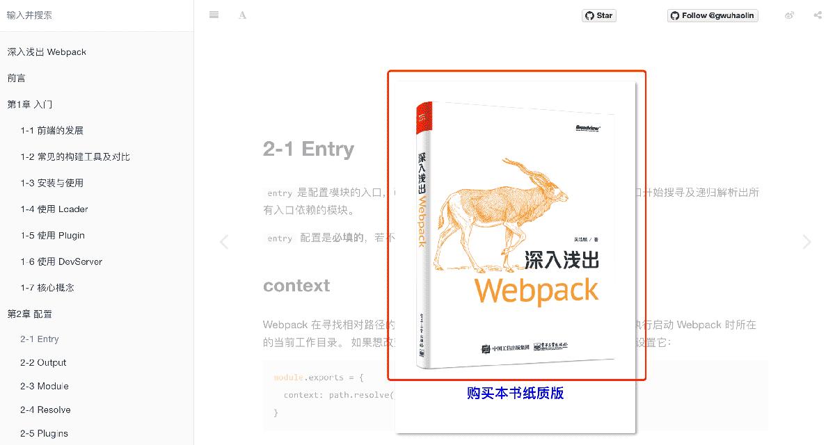首先我们打开素材链接:http://webpack.wuhaolin.cn,这是一本在线书籍,叫《深入浅出webpack》,讲的非常全面非常好有兴趣的可以看看,回到整体,当我们看第一章的时候,一切都非常的好,但是到了第二张的时候却出现了一个非常烦人的弹窗