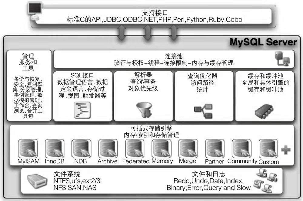 Archive存储引擎只支持INSERT和SELECT操作,从MySQL 5.1开始支持索引。Archive存储引擎使用zlib算法将数据行(row)进行压缩后存储,压缩比一般可达1∶10。正如其名字所示,Archive存储引擎非常适合存储归档数据,如日志信息。Archive存储引擎使用行锁来实现高并发的插入操作,但是其本身并不是事务安全的存储引擎,其设计目标主要是提供高速的插入和压缩功能。当然MySql还支持很多其他的存储引擎,这边不一一列举了。