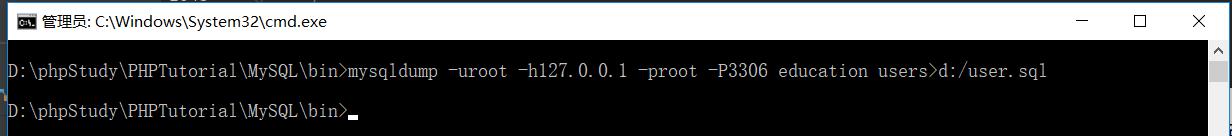 mysqldump -uroot -h127.0.0.1 -proot -P3306 -d education users>d:/user.sql