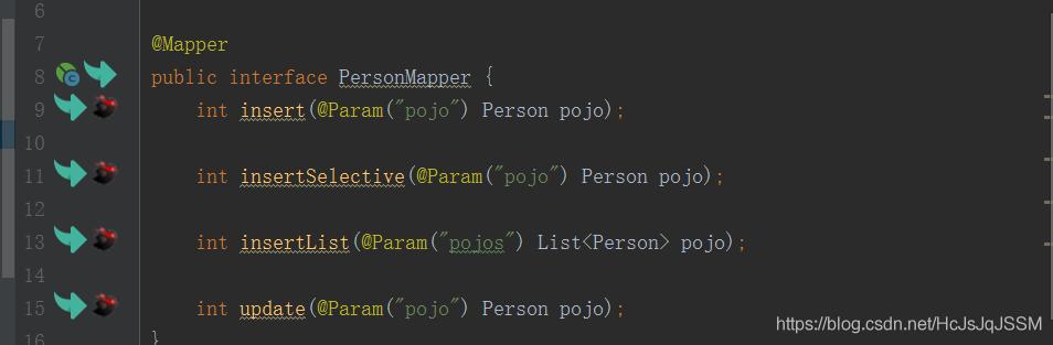PersonMapper.java文件内容如下(我讲PersonDao修改为PersonMapper文件了).
