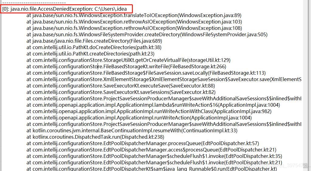 1.这个报错是没有写入文件的权限,再看后面的“C:\Users\.idea”,说明是没有C盘的写入权限