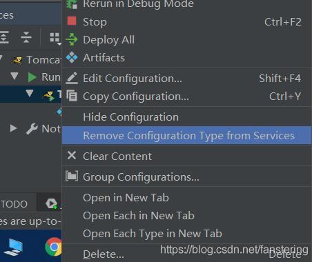 个人理解应该是因为服务里只有Tomcat这一个 所以将它移除后直接services视图就被关闭了