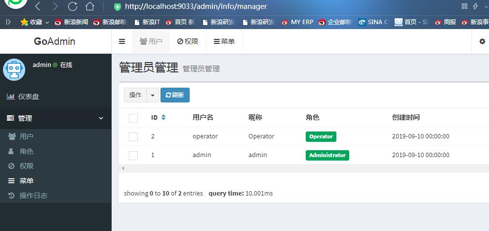 访问 http://localhost:9033/admin 用户名密码:admin / admin