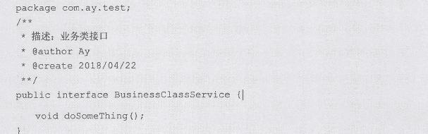 BusinessC lassService 业务接口类可以理解为日常开发业务创建的接口类, 接口中有一个简 单的方法doSomeThing 。然后,开发业务类的实现类BusinessClassServiceImpl,具体代码如下: