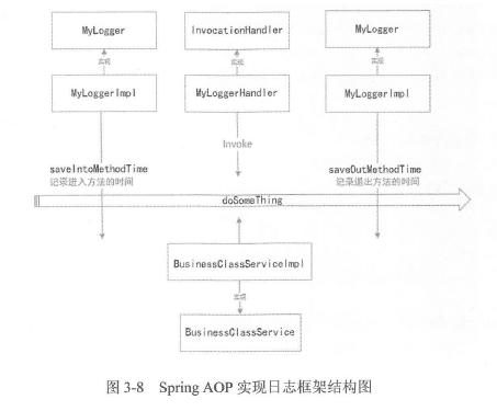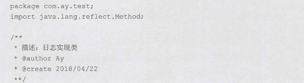 MyLoggerlmpl 类实现接口MyLogger , 并实现savelntoMethodTime 和saveOutMethodTime 方法,在方法内部打印进入/退出方法的时间。 最后, 实现最重要的类MyLoggerHandler , 具体代码如下: