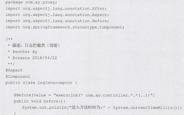 配置添加完成之后,要定义一个切面Loglnterceptor ,具体代码如下: