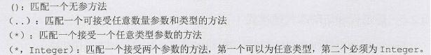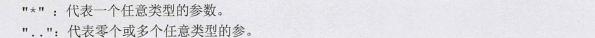 其中黑色字体部分不能省略,各部分都支持通配符“*”来匹配全部。比较特殊的为形参 表部分,其支持以下两种通配符: