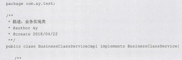 首先,在项目包com.ay.test 下创建业务接口类BusinessClassService,具体代码如下: