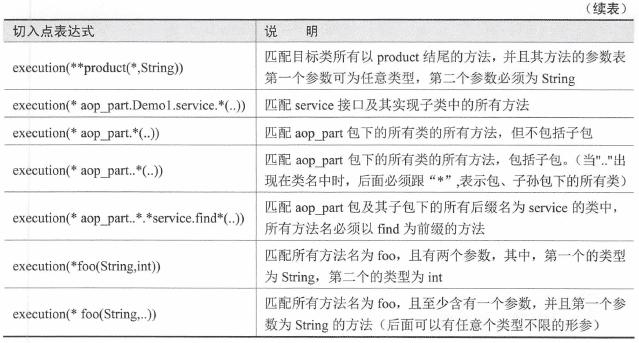 下面举一些execution 的使用实例,具体内容见表3 -3 。