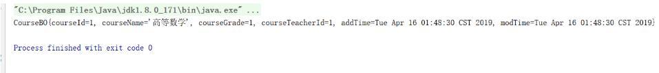CourseBO courseBO = courseMapper.getCourseByPriMaryKey(1L);