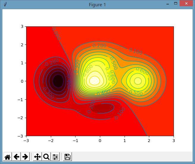 上面是用plt.contourf()填充了等高线,但还有一种方式是可以直接显示等高线,而不是填充的方式,例如:
