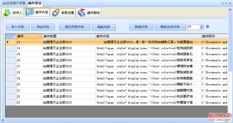 2、 内容也支持导入导出,并且保存到数据库,方便进行记录及操作等,另外可以对内容进行随机混淆,混淆的内容在HTML邮件中式隐藏的,方便糊弄一下服务器的识别。