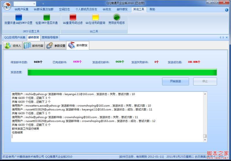 6、 最后体验一下少量邮件的发送效果,发送采用多线程发送,多线程采用比较有名的SmartThreadPool组件,并且发送过程总详细记录其中的日志,供参考。