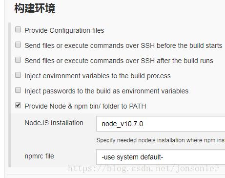 这样我们就能在自动构建发布的配置里看到nodejs的编译选项了