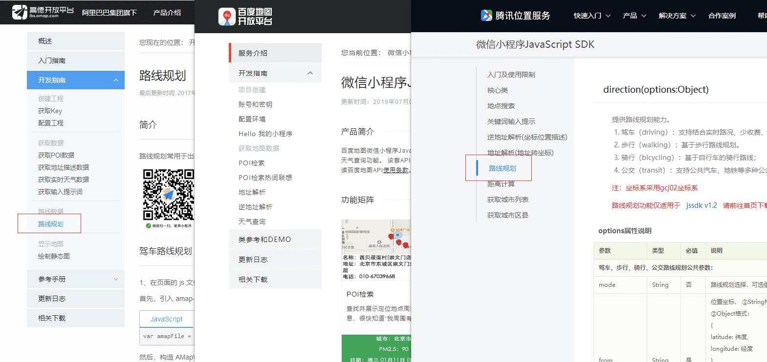 最近项目中做到相关网约车小程序。需要使用到地图中的路线规划,对3种地图进行了分析。这里稍微做一下总结: