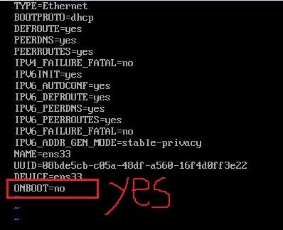 4.若查不到ip,则查看ens33网卡的配置,输入vi /etc/sysconfig/network-scripts/ifcfg-ens33(vi后加空格)