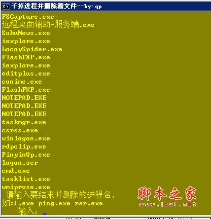 title 干掉进程并删除源文件--by:qp