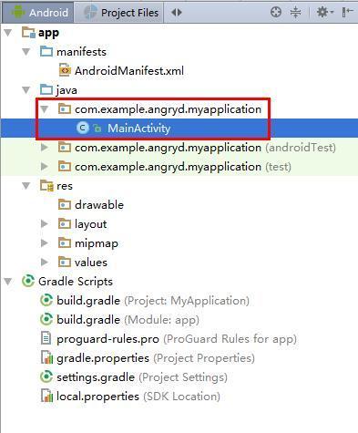 - java目录会默认生成三个文件夹,其中test为在本机执行单元测试代码的目录, androidTest为在Android设备上执行单元测试代码的目录,第一个不带后缀的目录就是存放我们代码的目录。