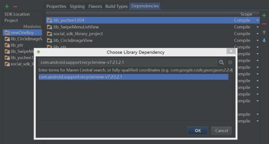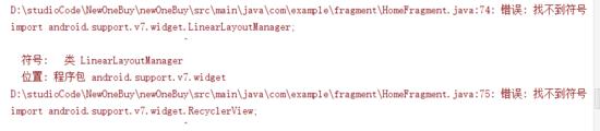 解决办法:找不到相关的类,定位到代码,发现是recyclerview的一些类报错,于是猜测是因为依赖的问题,在项目依赖库里添加recyclerview库,问题解决!