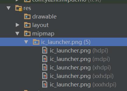 - res目录存放资源文件,包括图片资源文件、layout布局等,这个和eclispe类似,但有个新东西:mipmap目录,进入会看到里面存放着app的启动图标。
