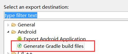 然而gradle爽是爽,但是后续也会提到在导入项目时因为gradle版本不同而出现一些麻烦的地方。 ##导入Eclipse项目 上面说了如何依赖库,但有些朋友需要开发旧项目而不是新建项目,光导入eclipse项目时报的错都够喝一壶了,更别提如何正确的依赖库,所以接下来就示范一下如何正确的导入eclipse的项目。不同项目会出现的问题不尽相同,这里权且算是抛砖引玉,给大家提供一些解决问题的思路。 首先在eclipse里,右键-export,导出项目的gradle目录