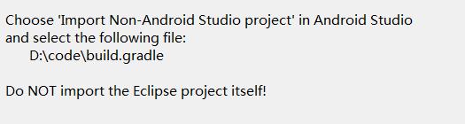 别人我不知道,反正我是照着这个提示在AS里导入目录下的build.gradle文件,然后结果就把整个工作目录里的项目都给导入了(?s?F□′)?s?喋擤ォ摺J裁垂恚∫欢ㄊ俏掖蚩?的方式不对!后来在AS里尝试