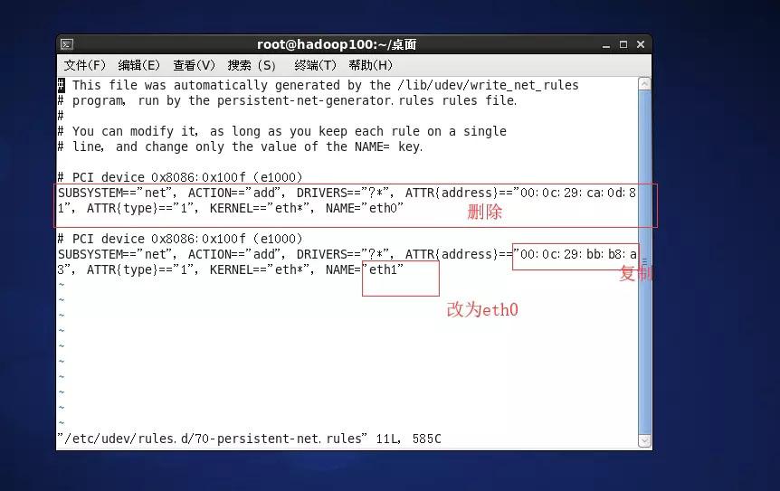 [root@hadoop105 /]#vim /etc/udev/rules.d/70-persistent-net.rules