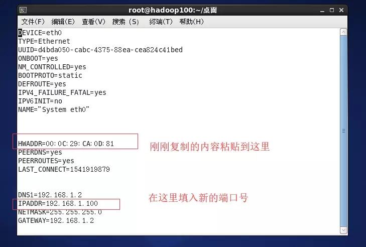 进入如下页面,删除eth0该行;将eth1修改为eth0,同时复制物理ip地址