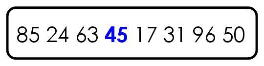 第一步,选择中间的元素45作为"基准"。(基准值可以任意选择,但是选择中间的值比较容易理解。)