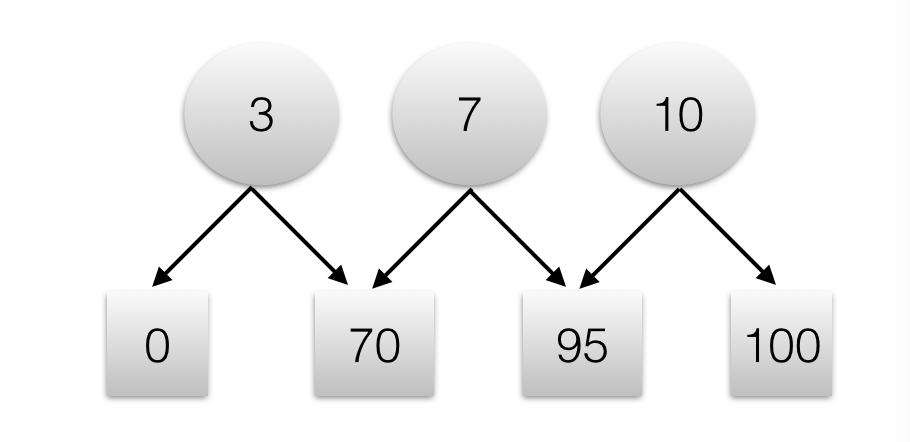还是拿上述的例子,3出现的概率是70%,我们给他的权重赋值为70,5出现的概率为25%,我们给他的权重赋值为25,10出现的概率为5%,我们给他的权重赋值为5.