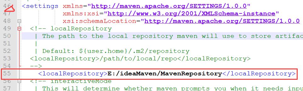 加上这段 <localRepository>E:/ideaMaven/MavenRepository</localRepository> 【E:/ideaMaven/MavenRepository 这位是你刚刚创建的本地仓库地址】