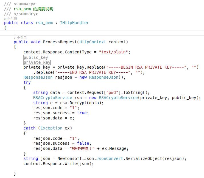 微软的C#中虽然有RSA算法,但是格式和OpenSSL生成的公钥/私钥文件格式并不兼容。这个也给贯通前后台的RSA加密解密带来了难度。为了兼容OpenSSL生成的公钥/私钥文件格式,贯通javascript和C#的RSA加密解密算法,必须对C#内置的方法进行再度封装。